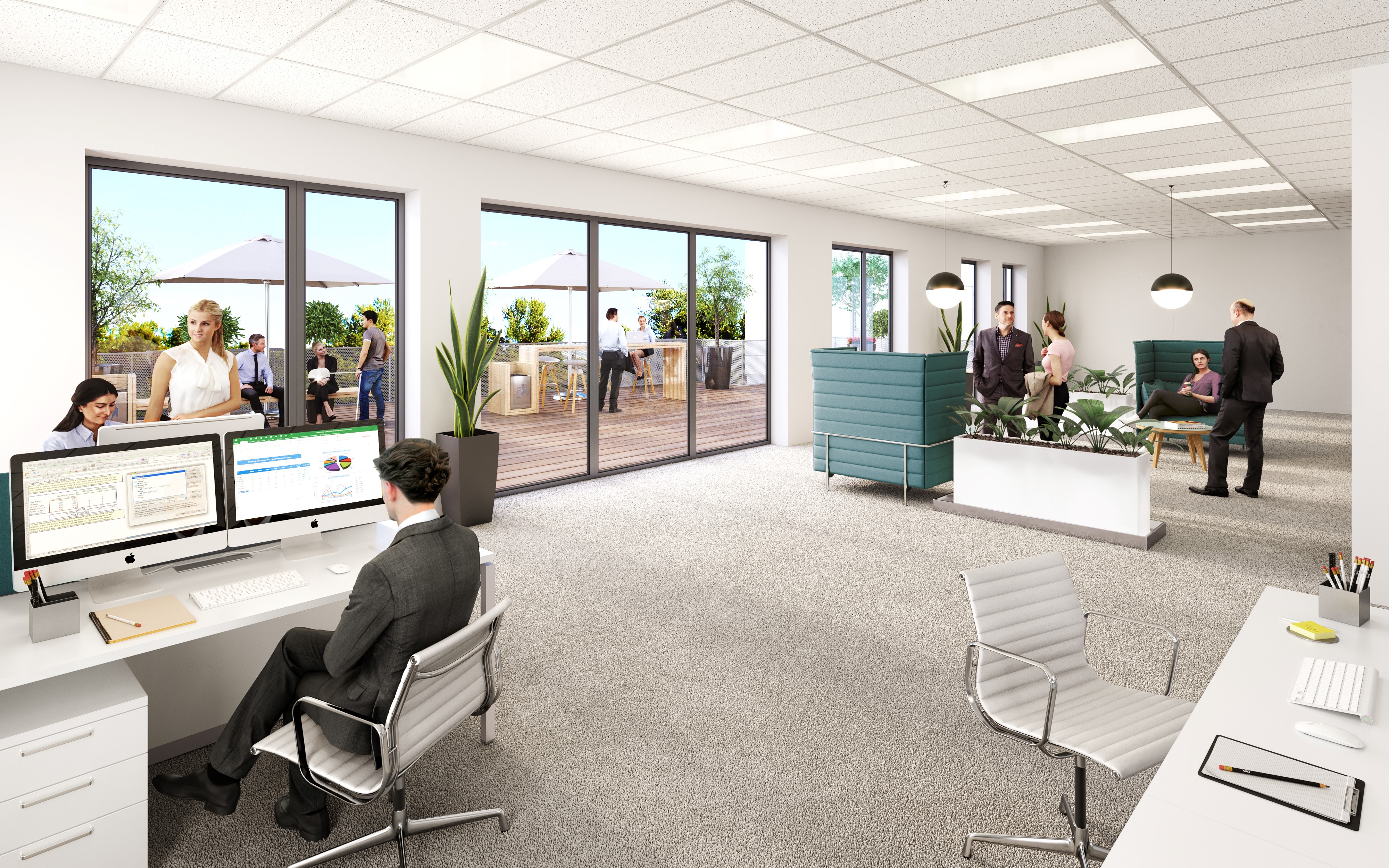 - Hauteur sous faux plafond des espaces bureaux de 2.70m.